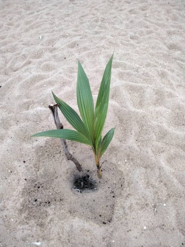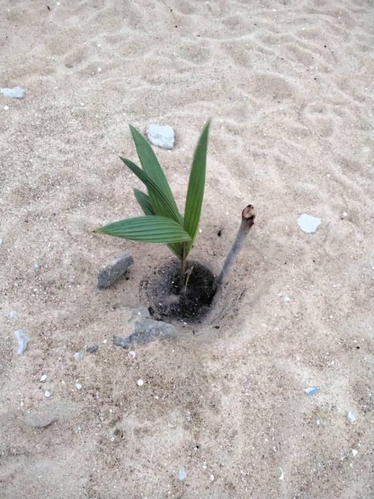 Ici, il s’agit de nos 100 cocotiers plantés a la plage Fidjrosse le samedi 01 juillet dernier avec la collaboration de , l’ONG LEAD BENIN et sous la tutelle de la Mairie de Cotonou, de l’OIF et l’IFDD dans le cadre du projet UMUGANDA FRANCOPHONE.