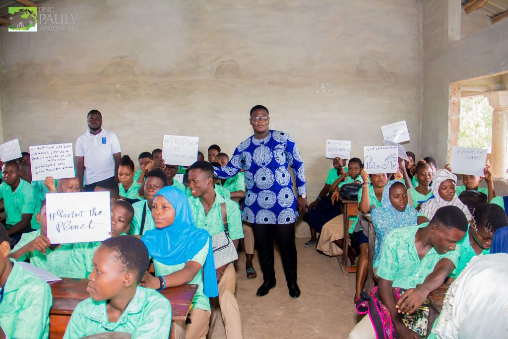 Ce jour 09/02/23 s’est tenue dans le college OLATONDJI D’AKASSATO une séance de sensibilisation au profit des jeunes sur les gestes écologiques pour la préservation de l’environnement et l’importance des mangroves dans le processus de lutte contre le réchauffement climatique.